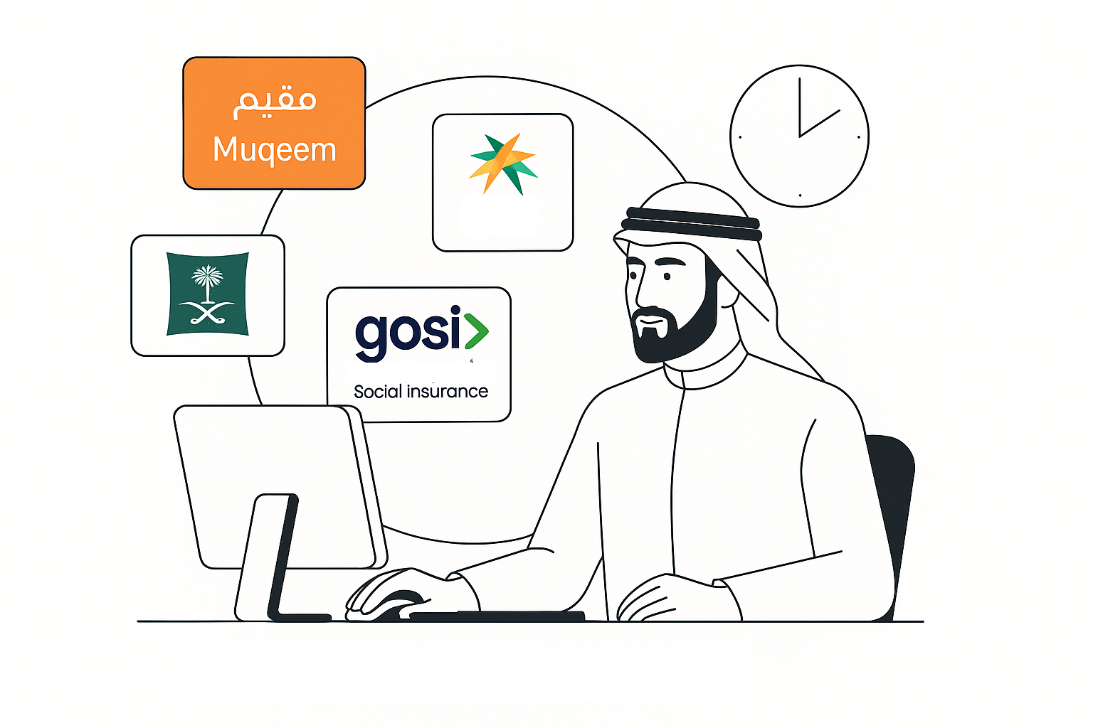 We manage it all — Muqeem, Qiwa, GOSI, ZATCA, Absher, and more.